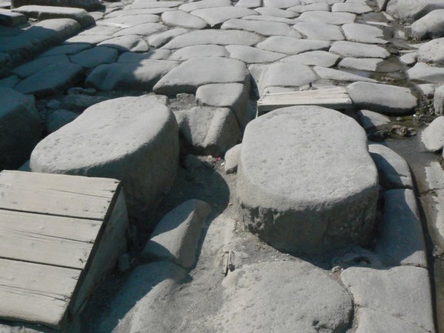 a roadway with stepping stones in the medium distance