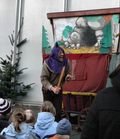 a medieval puppet show form the medieval Christmas market